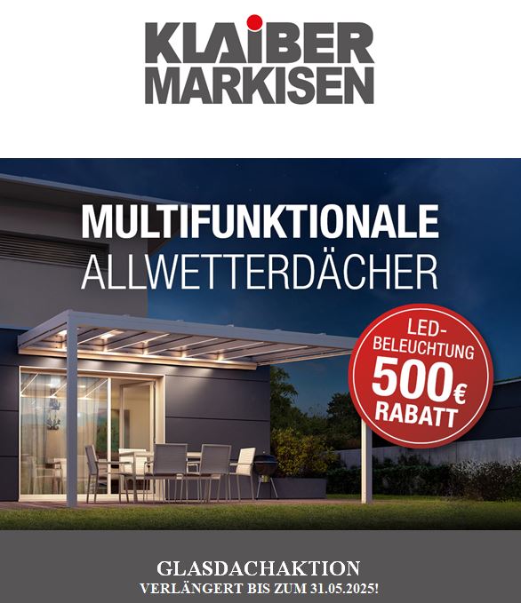 Bis zum 31.05.2025 erhalten Sie attraktive Rabatte auf verschiedene Sonnenschutz-Produkte der Firma Klaiber
